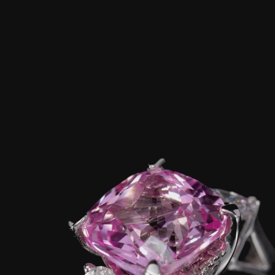 三石 · 垫型培育粉蓝宝戒指